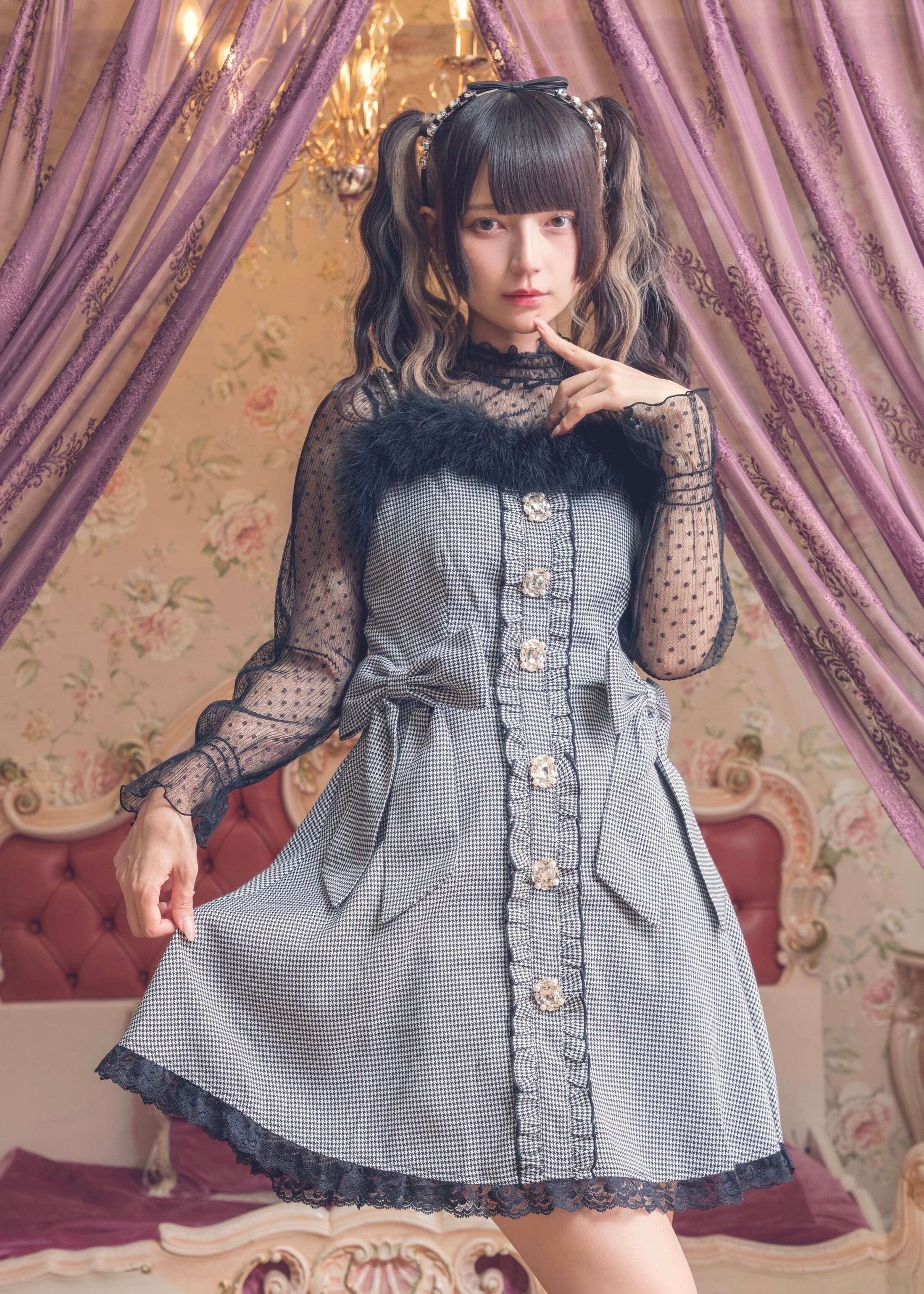 【ManonMimie】Slit Sleeves Gothic Check OP