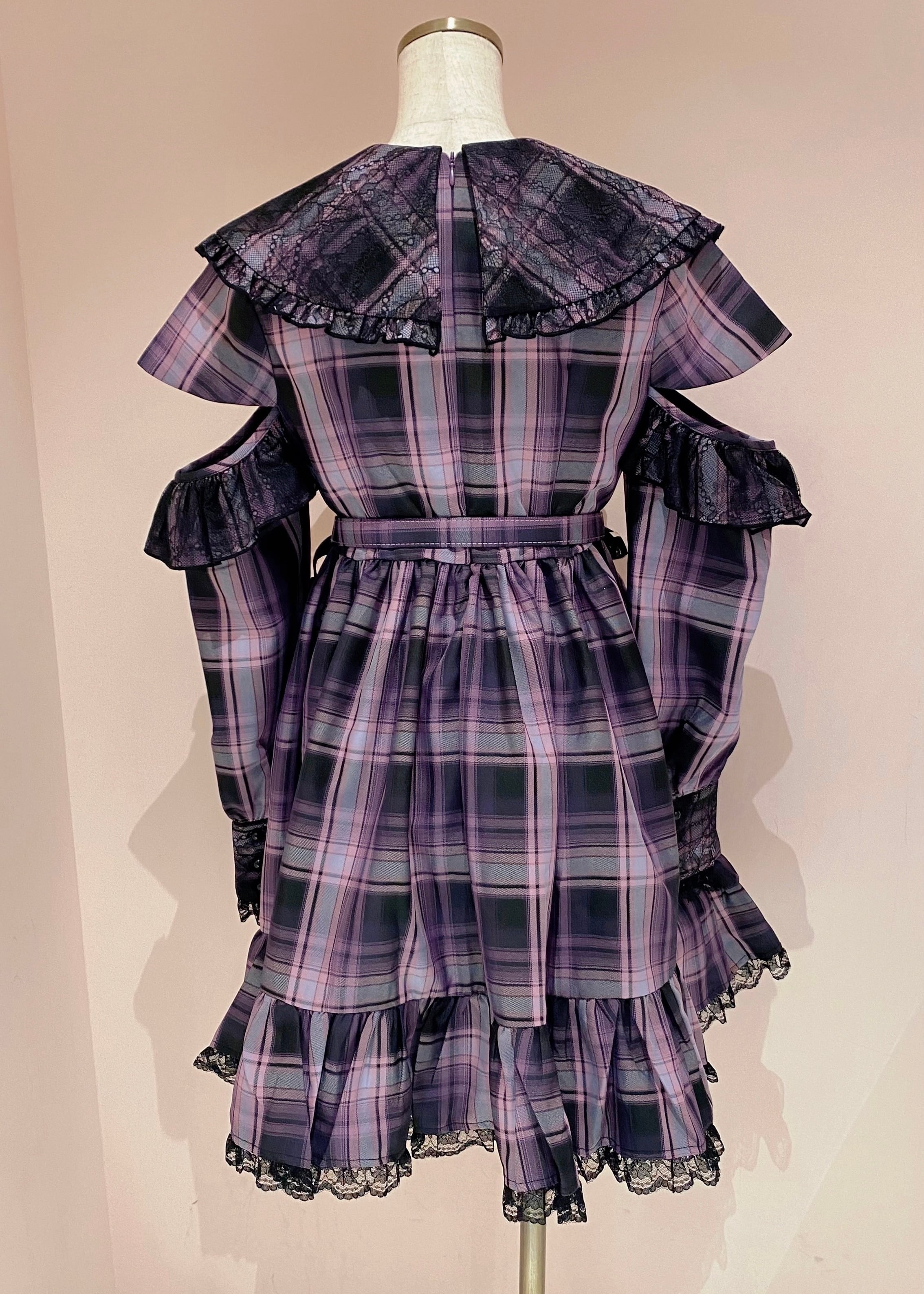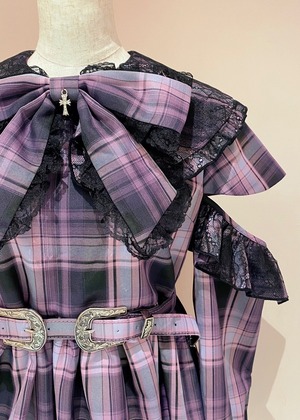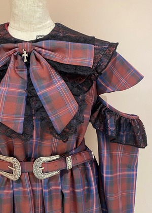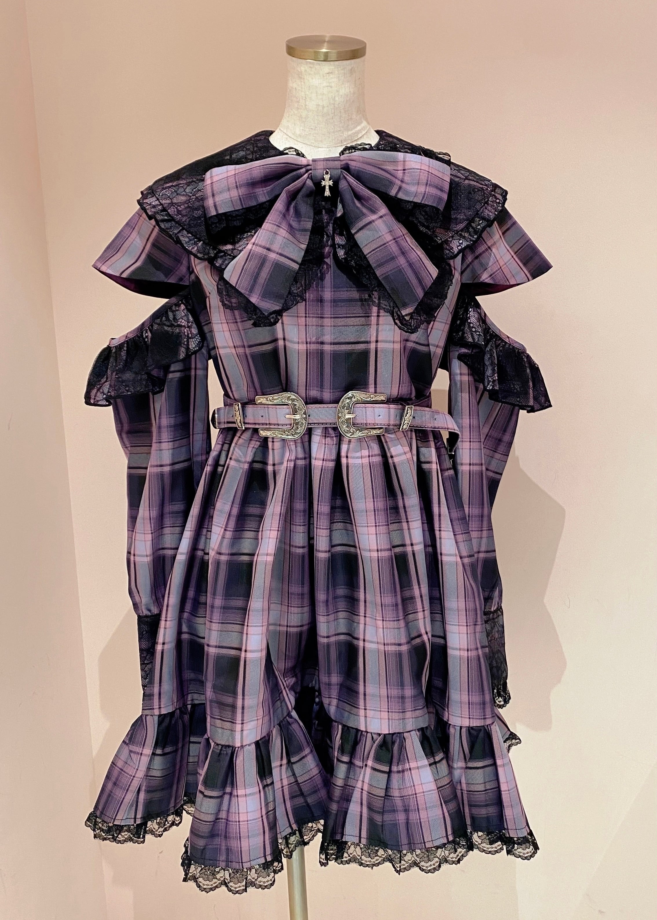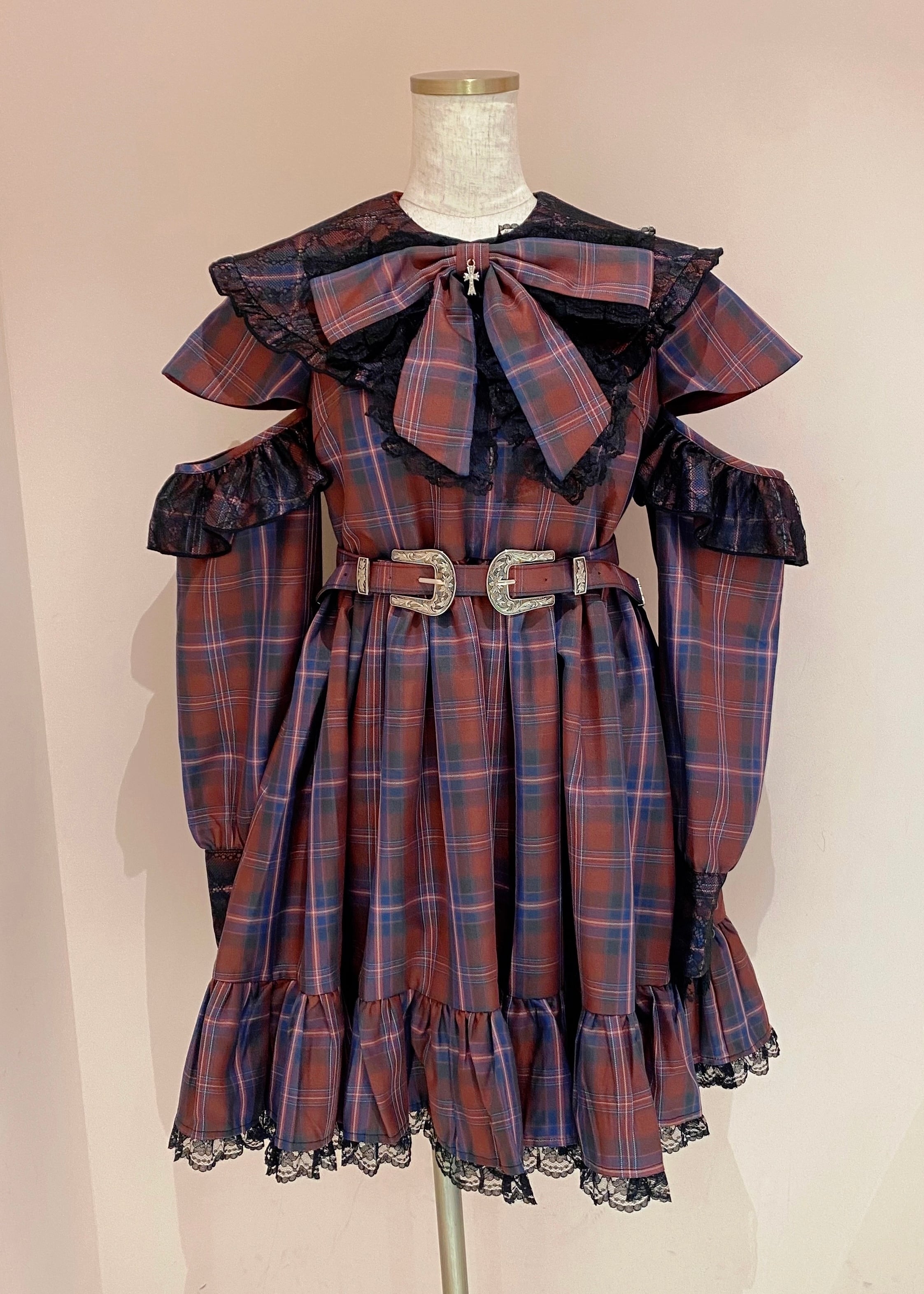 ゴシックライクなチェック柄とシルバーのウエストベルトがおしゃれな華やかワンピース。