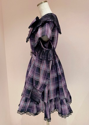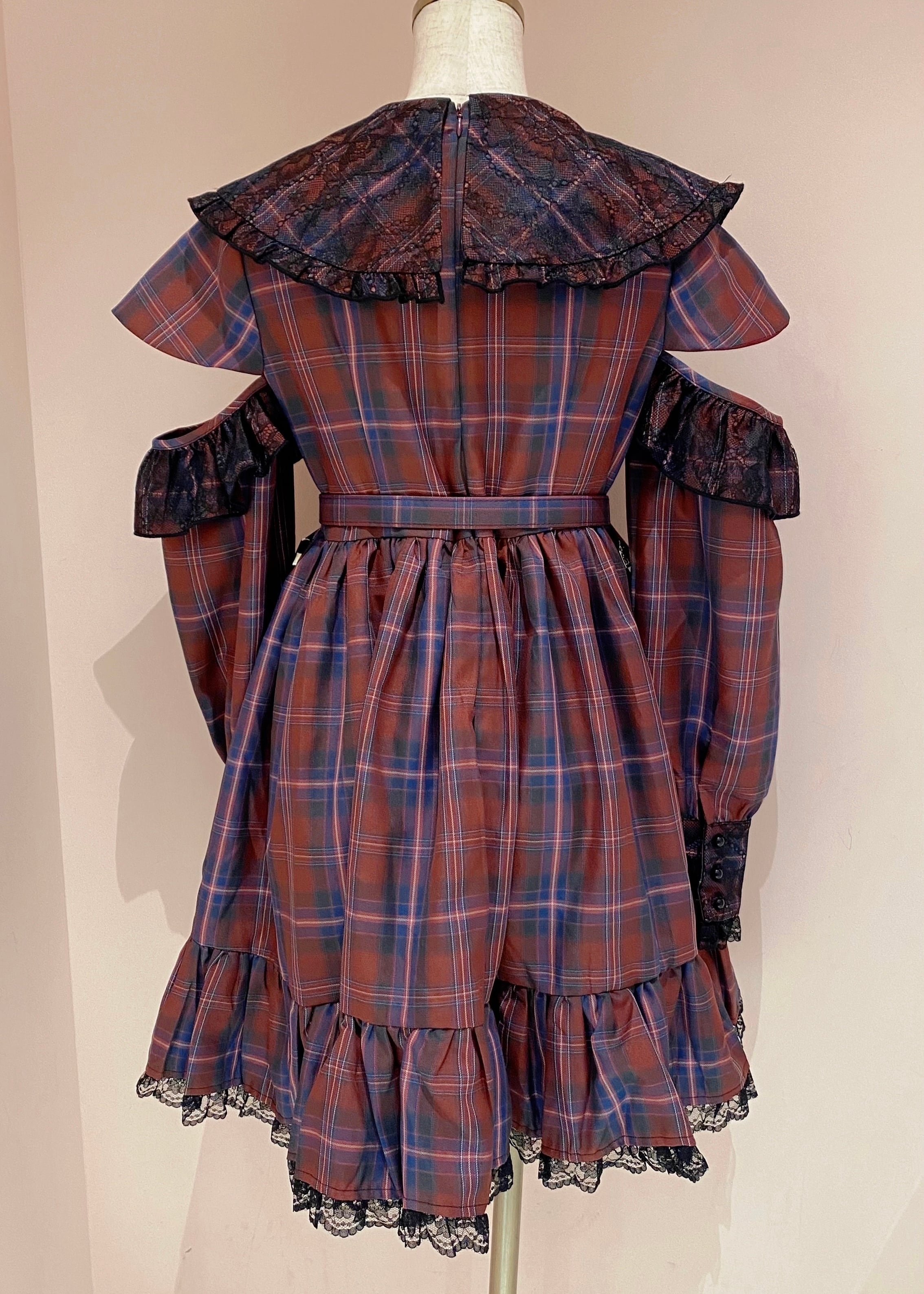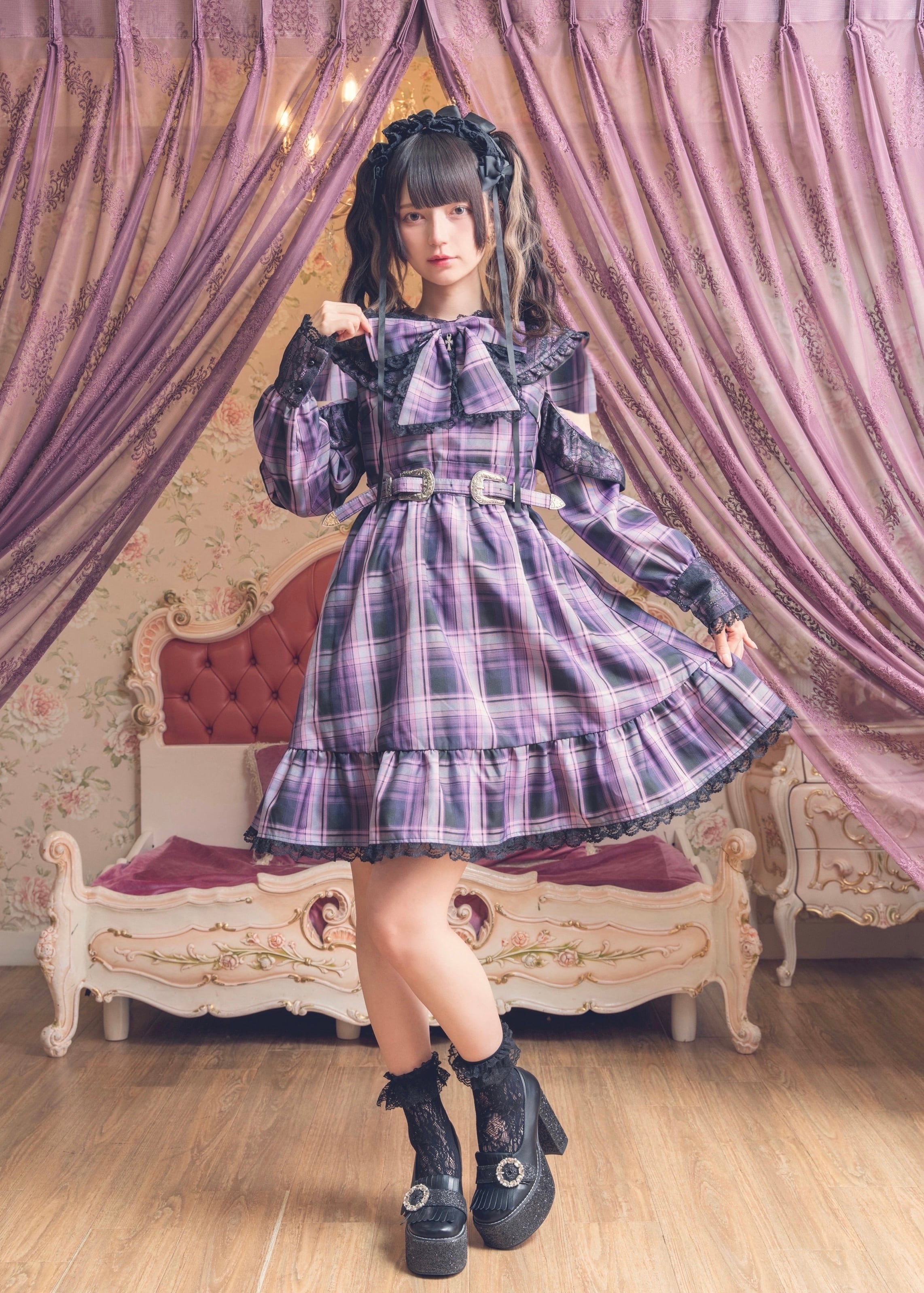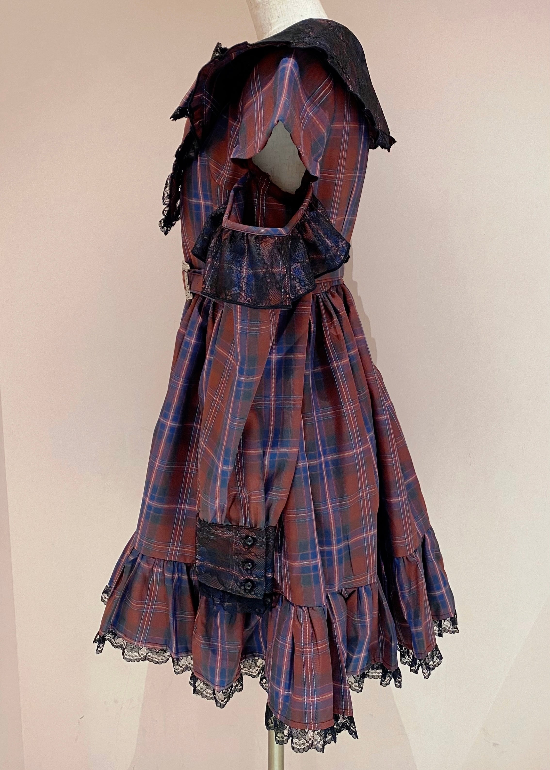 ゴシックライクなチェック柄とシルバーのウエストベルトがおしゃれな華やかワンピース。