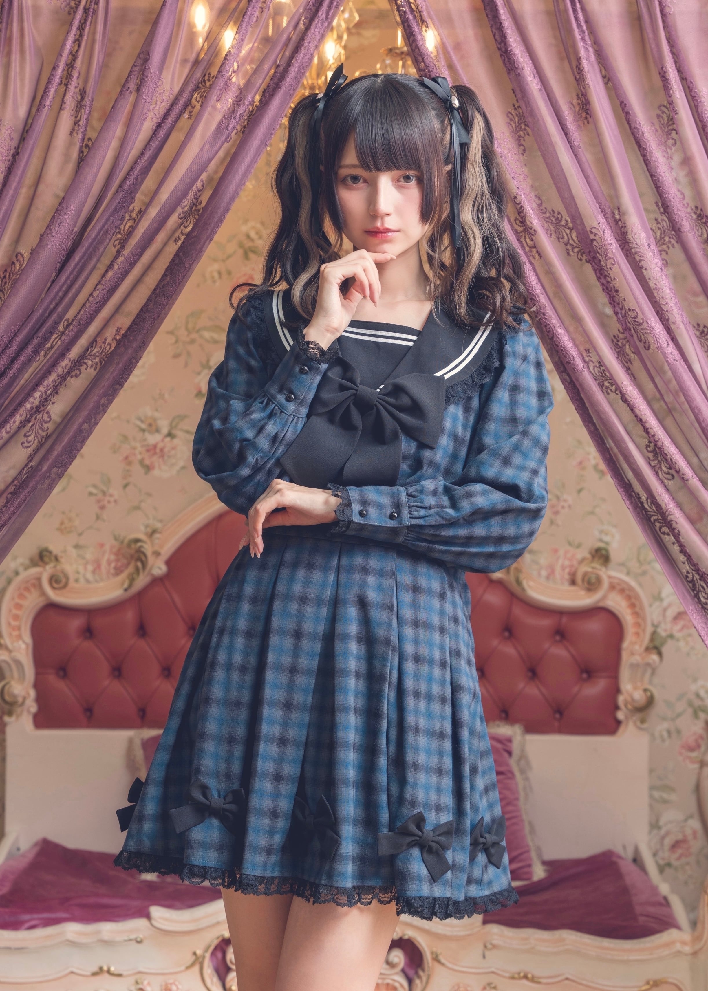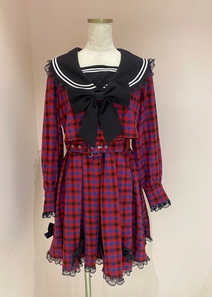 クラシックなセーラーデザインにゴシックライクなチェック柄を使用したおしゃれなワンピース。