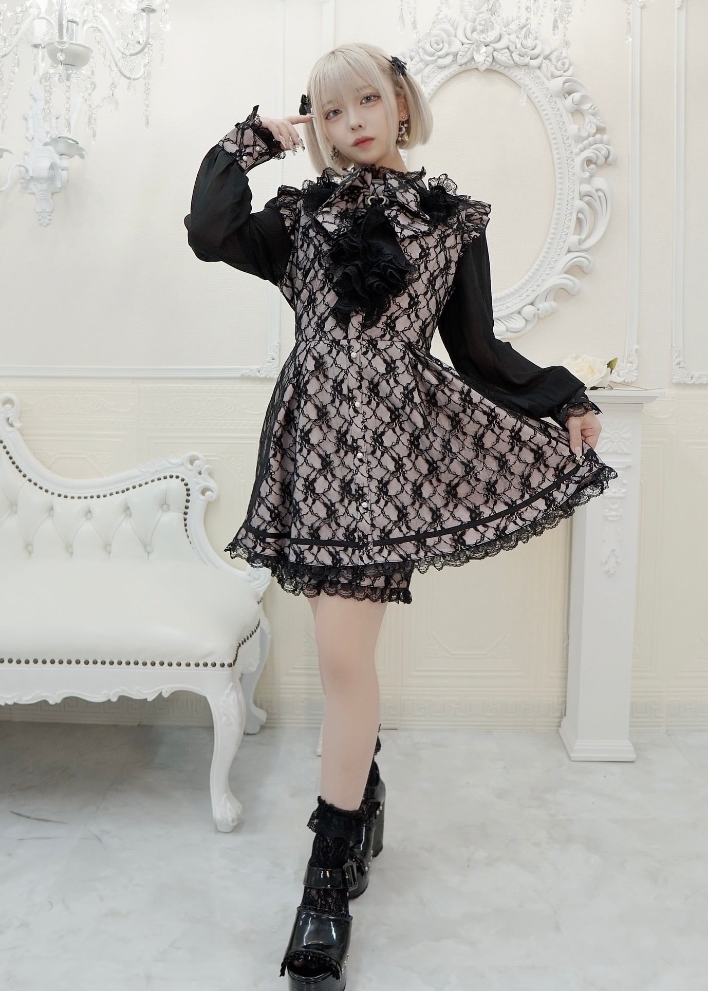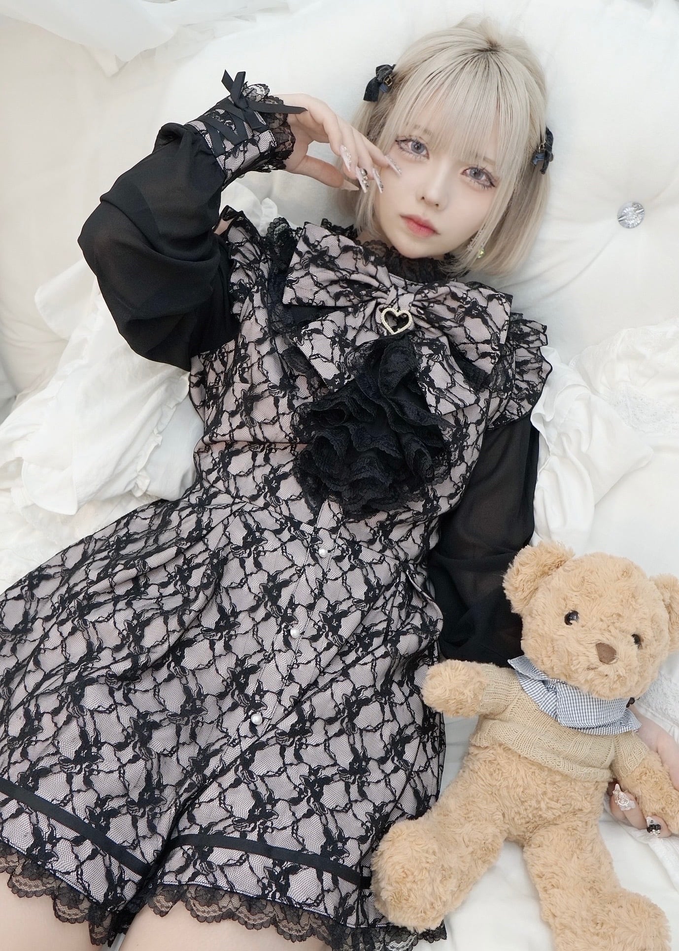 レースを重ねたデザインでロマンチックガーリーに仕上げます。